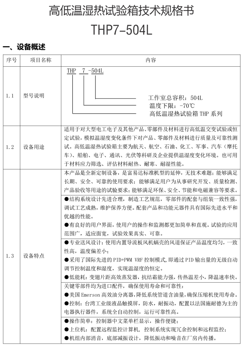 富易達(dá)FUYIDA-THP系列-高低溫交變濕熱試驗(yàn)箱| 選型參數(shù)表